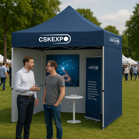 Jeśli wydarzenie ma charakter krótki, a teren jest osłonięty, lekkie namioty promocyjne sprawdzą się doskonale — są szybkie w montażu i mobilne.
